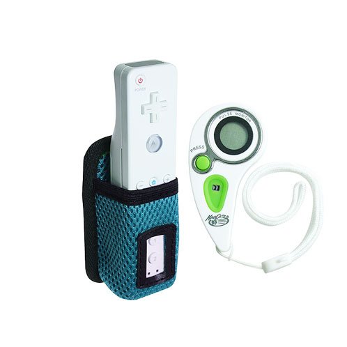 Designed to be used with Wii Fit. This workout-enhancing bundle includes both a Wii Remote holster and a convenient heart-rate monitor for use while you work up a sweat performing your fitness routine. Keep your Wii Remote safe and close to hand and easily track your heart rate while you burn calories. The Wii Remote holster's lightweight elastic mesh design holds snug without adding excess weight during your workout and permits easy access to buttons while the Wii Remote is in the holster. Attach the holster using the heavy-duty clip so the Wii Remote stays firmly in place while you move around. The handheld heart rate monitor features an LCD screen that displays your pulse between 30 and 200 beats per minute, allowing you to track the intensity of your workout